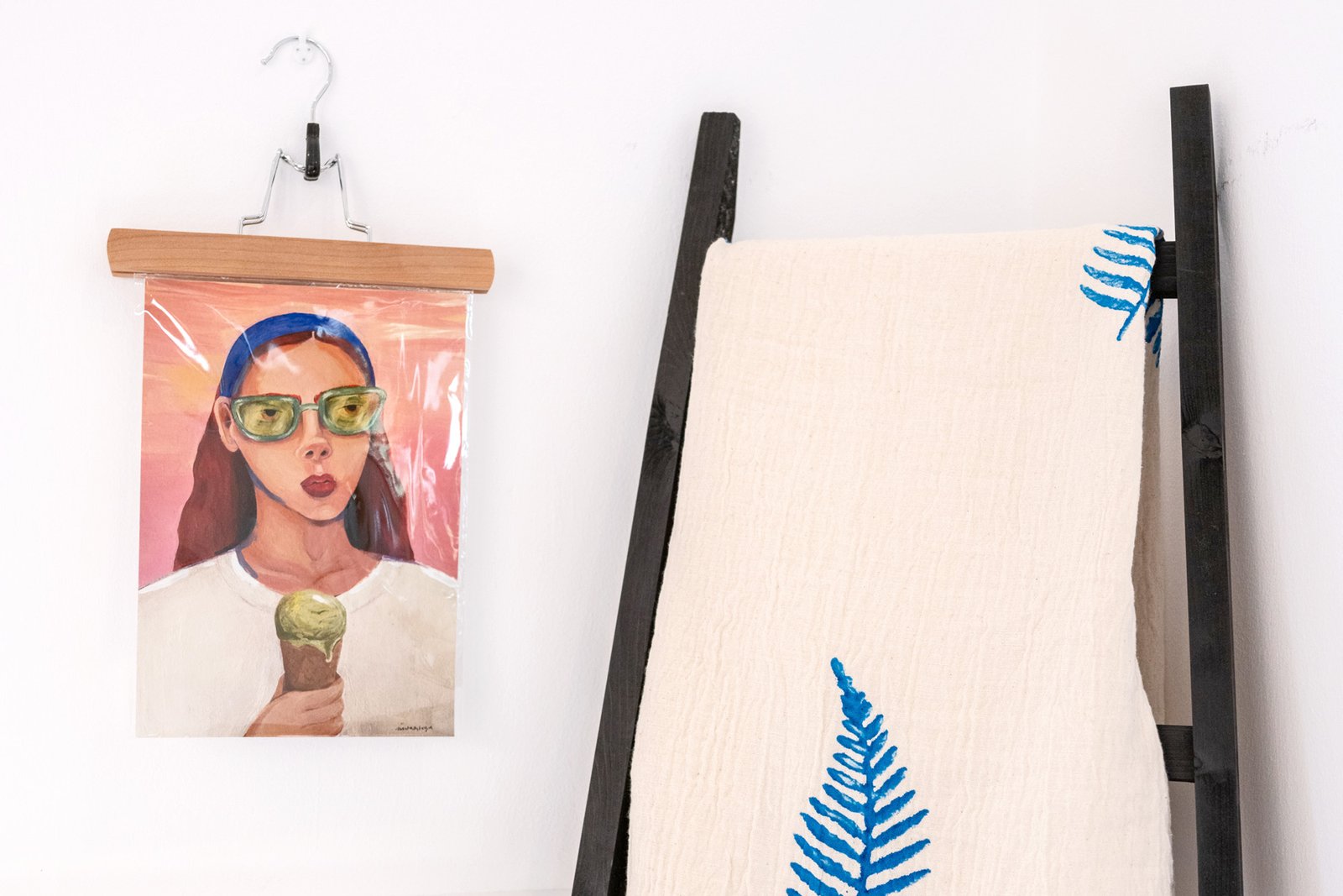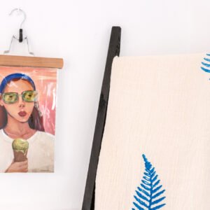 Ilustración de Marta Ortega en A4, impresa en papel de acuarela de 260gr y pintado por zonas a mano en azul